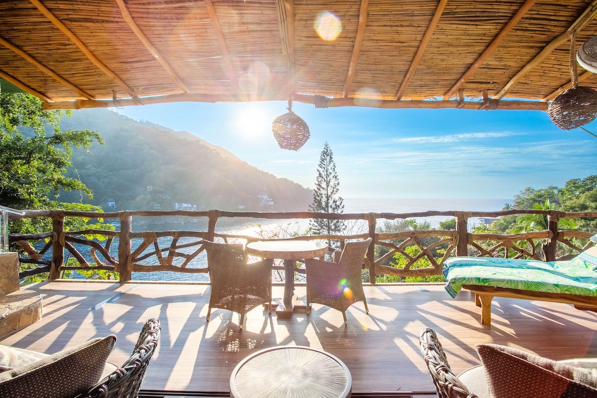 Wake up to the sounds of the jungle and look out at the breath-taking trees and hills. You will never forget it. This is a new palapa with a great view of the jungle only 15 mins walk from Sayulita and the beach. Safe and private. Fully equipped kitchen, refrigerator, and drinking water. Sofa bed for to 2 extra people $15. Comfortable queen size bed on the second floor, with a small porch. The toilet/shower has a stone bathtub, hot water, soap, dryer and towels