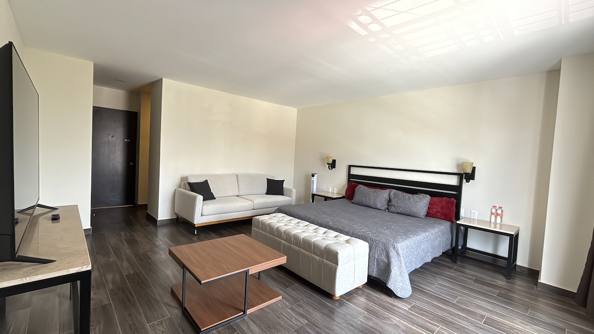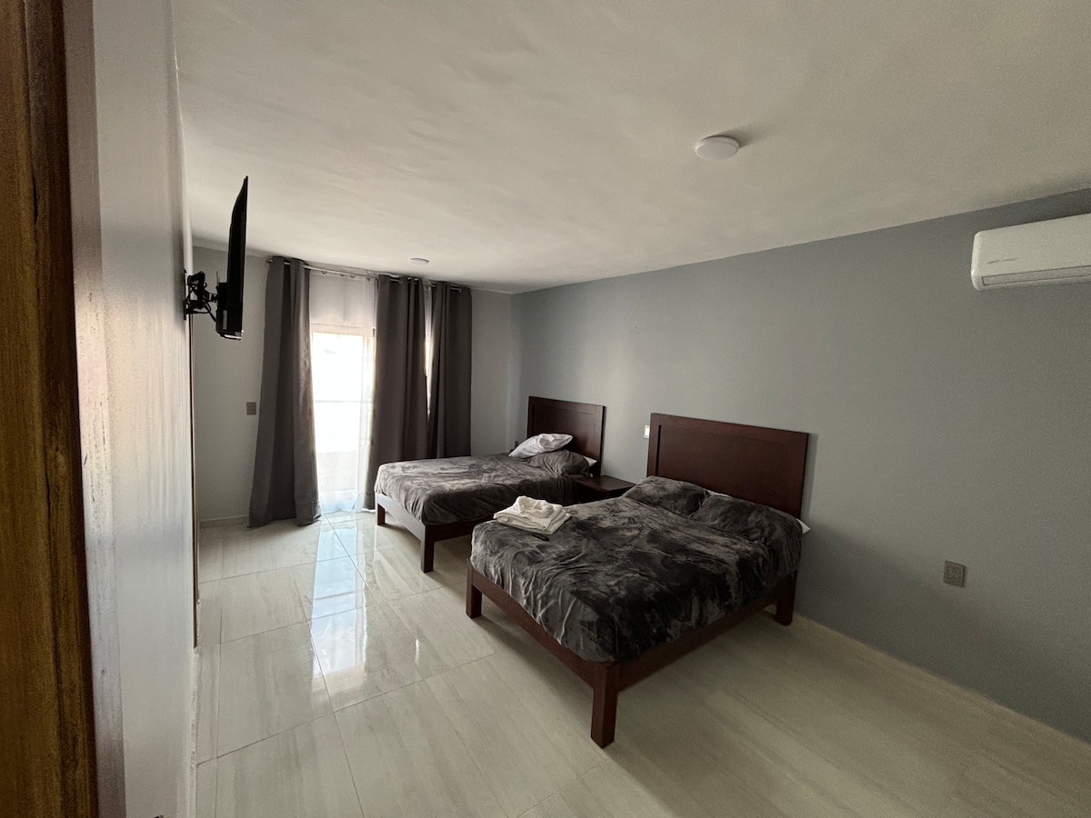 Estamos ubicados a 1/2 cuadra del pocito del primer milagro, a 2y 1/2 cuadras de catedral Basílica, a 2 cuadras del Centro comercial Argania, adicional tenemos Modernas instalaciones, todos los cuartos cuentan con wifi y smartv, así como Con colchones y almohadas memory foam para que tengas un sueño reparador y descanses como Te mereces