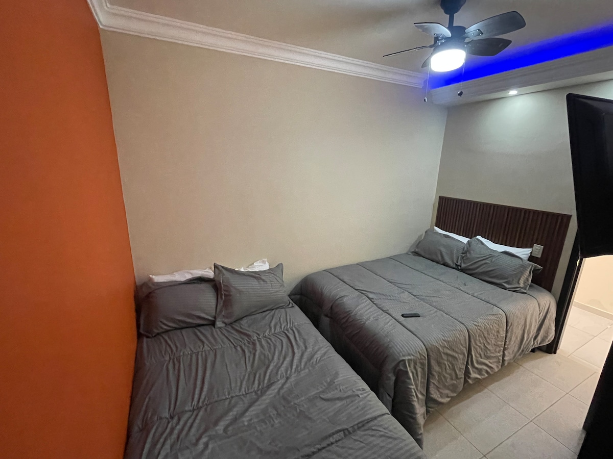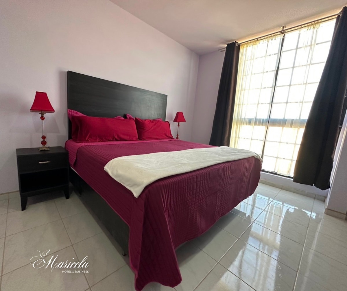 La Habitación Kingsize Confort en el Hotel Maricela es la opción perfecta para los viajeros que buscan lujo y comodidad. Cuenta con una cama king size cómoda, escritorio y televisión de pantalla plana. Además, cuenta con baño privado, toallas suaves y artículos de aseo gratuitos. La habitación Kingsize es ideal para parejas que buscan una escapada romántica o viajeros de negocios que buscan comodidad y privacidad. ¡Haga de su próximo viaje una experiencia inolvidable con nosotros!