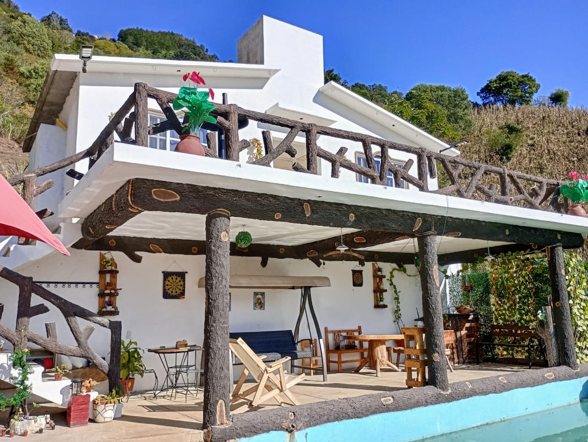 Conecta con la naturaleza en esta escapada inolvidable. Tendrás una excelente Panorámica de la terraza del pueblo de Ahuacatlan. Estarás muy cerca de sitios de interés del municipio de Pinal de Amoles, a 5 km del Chuveje y 10km de Rio Escanela (Puente de Dios), 5km de la Cueva de los Riscos, 15 km del infiernillo. Distancia de Jalpan: 10km Distancia de Pinal: 25km Depende la temporada podrás ver diferentes tipos de aves y mamíferos: Guacamayas, Búhos, cardenales, chacales, venado cola blanca.