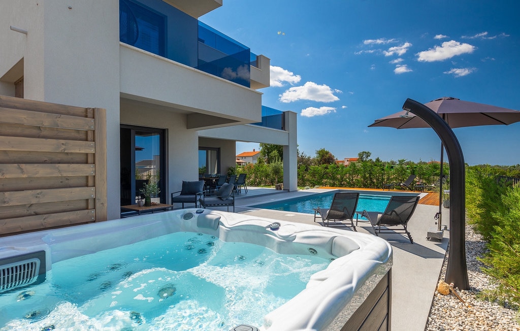 Villa Villetta – Charming Istrian Escape Perfect for a family 2+2 kids, Villa Villetta offers 1 bedroom, a bathroom, living room with a double sofa bed, and a fully equipped kitchen. Enjoy your private 15m² pool, whirlpool, sun deck, lounge & BBQ area, all set in a beautifully landscaped garden. Private parking included. Relax, unwind, and make the most of your Istrian getaway!