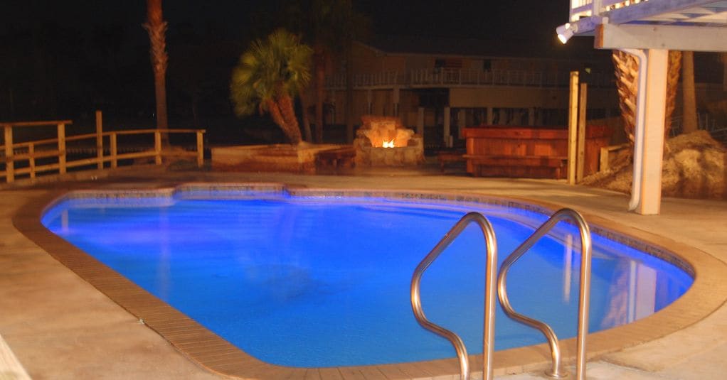 泳池边的加大双人床:可选择穿衣服进入的加热泳池
