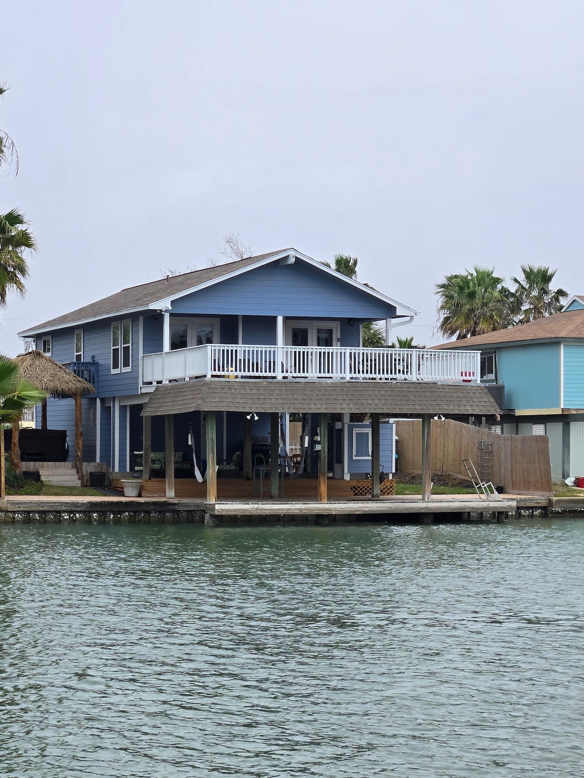 Looking for a modern exquisitely decorated beach home where you can fish/kayak right off the back porch & enjoy sunrises/sunsets from multiple private decks? You've found it! Welcome to Agua Vista Waterfront Villa. Our gorgeous modern home features 3bedrooms up+Bonus 4th bedroom down +2.5baths w/ expansive living/kitchen space, Smart TV's in every room, Ping Pong, Kayaks provided for you, Fishing (w/ underwater lights), Shade, Games, 8 person Hot Tub, Fans on all porches and lots of beach toys!