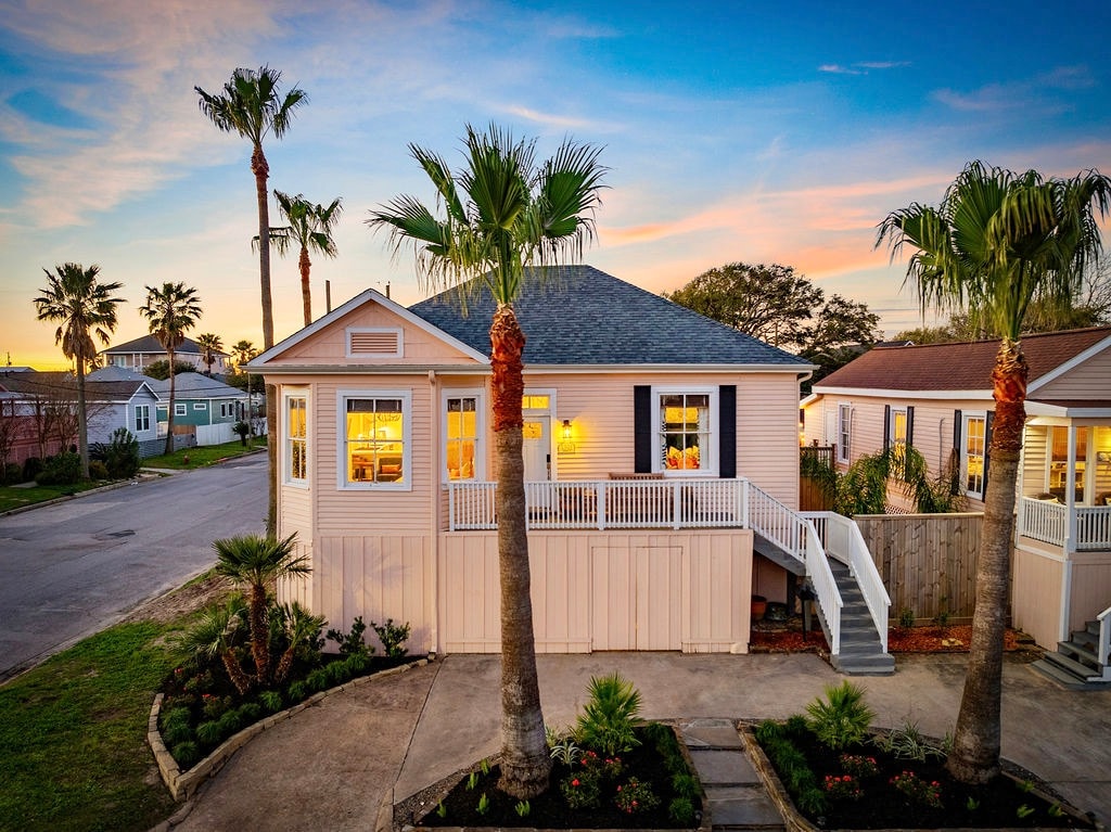 AS SEEN ON TV. Find this gem on Restoring Galveston. Newly renovated 927 square foot home nestled amongst the mature trees in Galveston's Midtown. When you enter this historic beach cottage you will immediately feel at home and relaxed. 50" TV in the living room and 43" TV's in the bedrooms offering Netflix, Youtube TV and Disney+. So many extras including a cowboy pool, life size chess set, fire pit, beach chairs, umbrella, heated toilet seats and off street parking just to name a few.