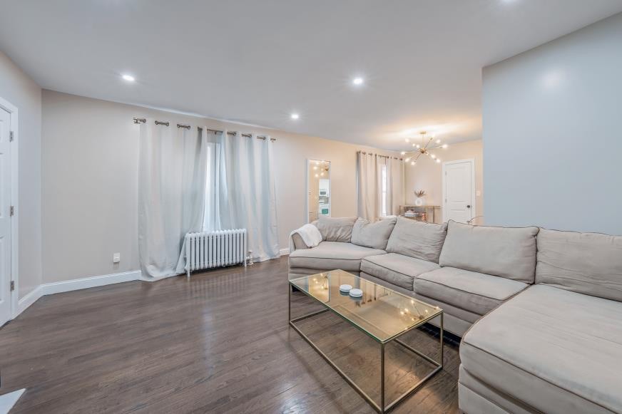 Come enjoy this brand new stylish home just 5 mins away from JFK airport. Perfect for layovers, vacations and business trips. We are located in a wonderful diverse neighborhood which is centrally located to all. Check out Tracey guide book There are 3 bedrooms in this apartment that are listed on Airbnb. Common areas are shared and it’s on the 1st floor. 1 King bed 1 bath (only for you) Living room Dining room Kitchen Washer/dryer The host will be presented at the location while hosting.