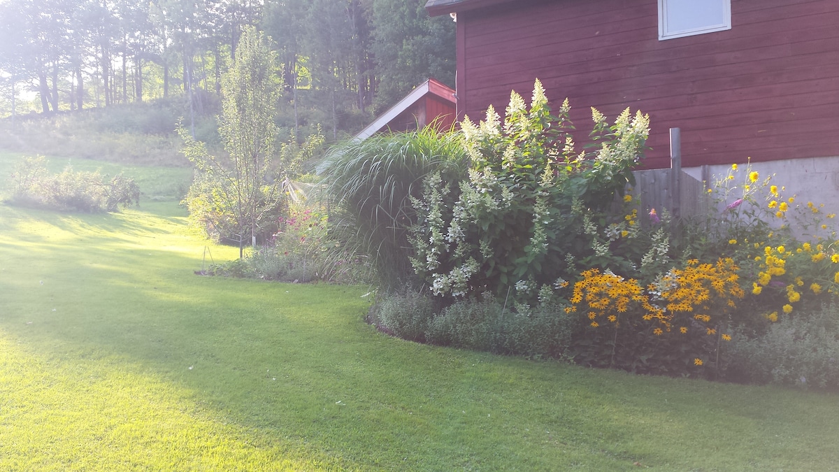 This is a two-story, renovated barn adjacent to the chicken coop in rural Vermont with views of the forests. It has brand new floors, a new kitchenette, and fresh look. (Some renovation is still taking place.) The chicken coop is just next door but the birds are free-range and range they will. Enjoy a private, hot shower in the garden, just outside. This listing is only suitable for people comfortable with dogs, cats, and chickens which will undoubtedly greet you outside during your stay.