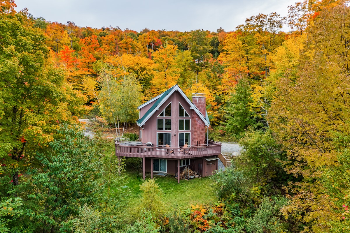 Escape to a classic Vermont A-Frame in Jamaica, Vermont on a private wooded 3-acre property along scenic Route 100. Near Stratton Mountain, Mount Snow, Jamaica State Park, and Pike Falls, this peaceful mountain retreat is perfect for hiking, swimming holes, fall foliage, scenic drives, and outdoor adventures. Enjoy mornings on the screened porch and evenings around the fire pit listening to the river across the street under the Vermont stars.