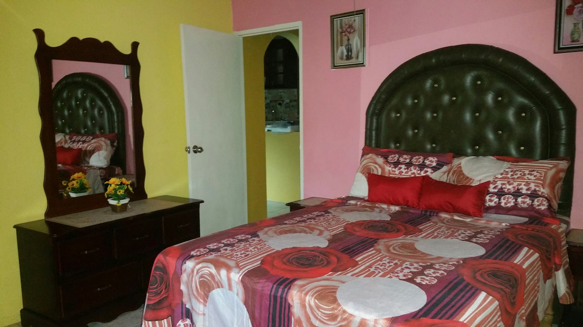 It's a newly renovated, very clean and cozy living space located right in the heart of Jamaica's "Sunshine City", Portmore. A lovely apartment to unwind and relax after a busy and exciting day which will find you waking up from a magically swift and restful sleep. This contemporary space is tastefully decorated with colorful patterns and accents, providing everything to make you feel at home - WiFi, Netflix, washer, queen size bed, well equipped kitchen and tableware.