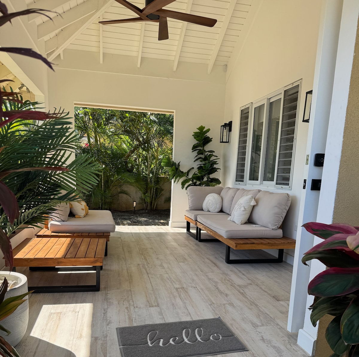 Private Retreat for close friends and family in the safety of a pristine garden-like gated community. New and dazzlingly beautiful, the oversize sectional will be your favorite place to lounge. Linger on the patio for breakfast, go across the street for snorkeling, tour the nearby beaches and waterfalls, or make your birthday celebration extra special with a spectacular private dinner. Savor the candlelight reflecting from wine glasses as you toast your amazing good luck.