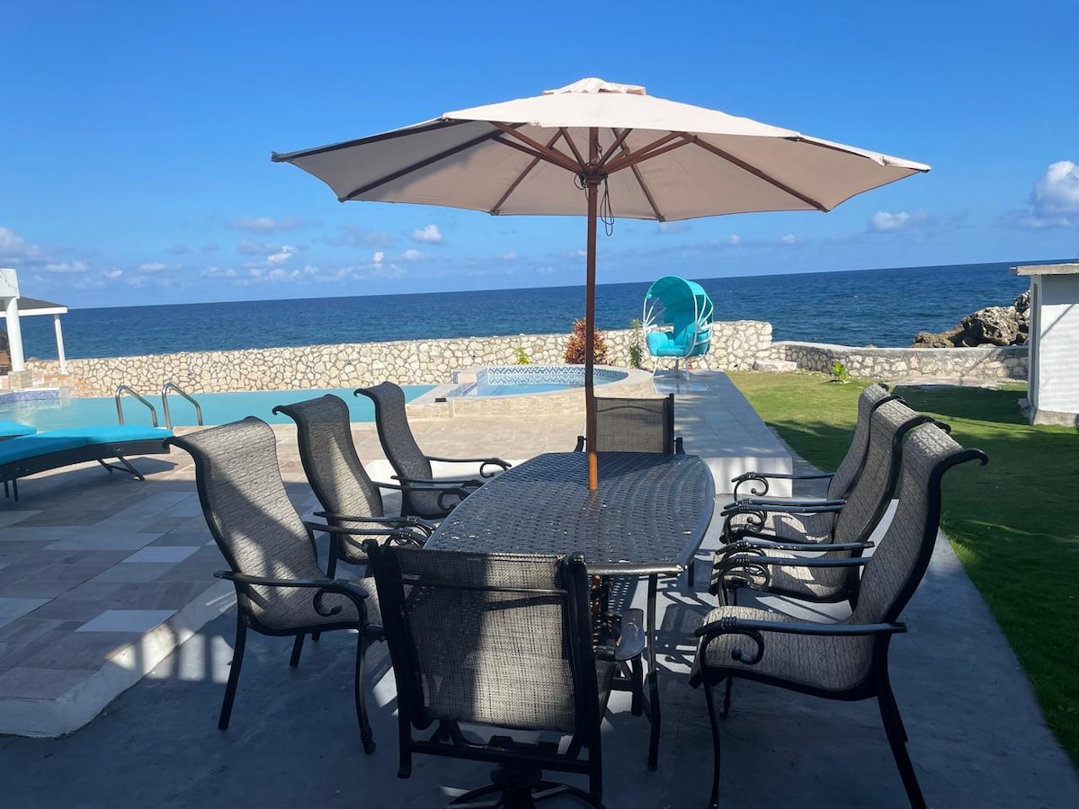 Villa Maria: A True Jamaican Experience (one of few Beach front villas in Mobay Fully staff Fully A/C Chef service available Up to 2 free airport pick-up from MBJ. Property : We are located in a seaside fishing village. Even though not needed, we are monitored by security and outside video 24-hour OPTIONAL FEE The following fee is paid in addition to and after the reservation is paid for $180 / per day for pool heater. This is only if you want the pool heated.