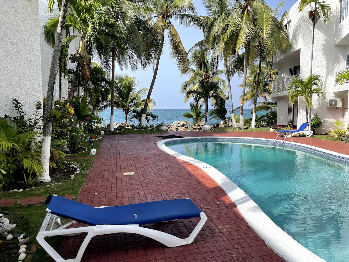 Escape to your own oasis with free beach access,in a newly renovated centralized location within the town of Ocho Rios, Jamaica, partial view of the beach from the balcony,minutes walk to scenic Ocho Rios Bay beach, walk to eateries restaurants ,major banks and shopping centres, 5 minute drive to renown attractions. such as Dunns river falls, Dolphin cove, Chukas cove and Mystic mountain . Your beachfront apartment offers IPTV, AC units, hot water, swimming pool access and free onsite parking.