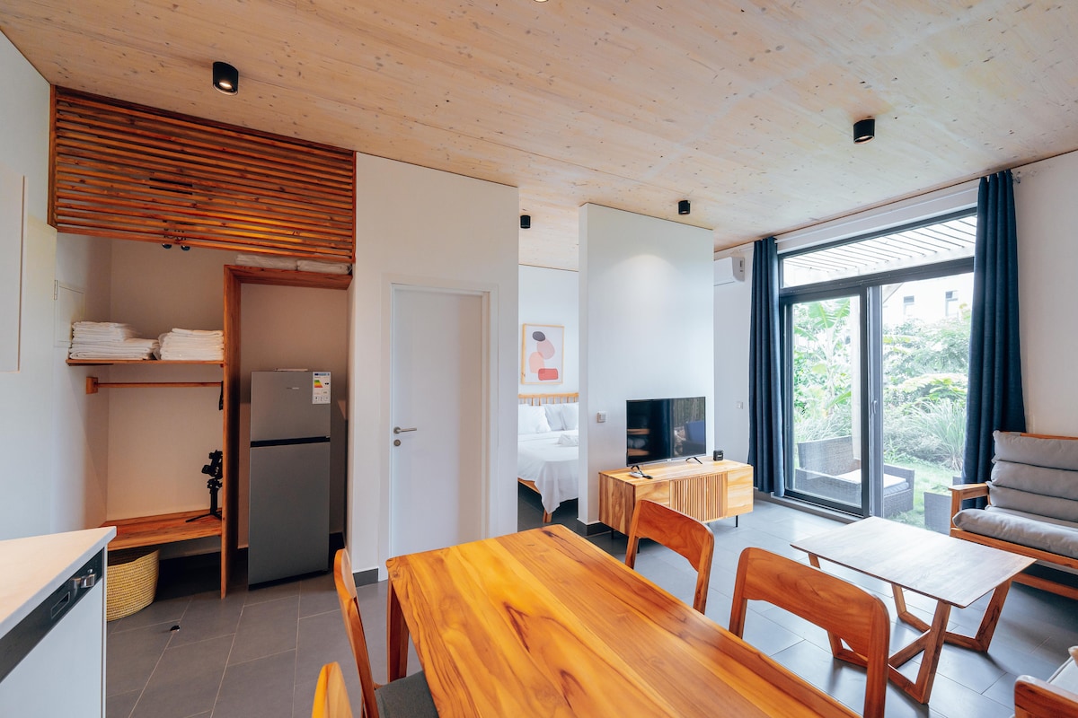 Escape to the beauty of The Soul Africa, where luxury meets tranquility in our gated community. Nestled amidst swaying palm trees and the crystal-clear waters of the lagoon is our 1-bedroom apartment. The apartment beckons you with its cozy ambiance, promising restful nights and rejuvenating mornings. When you're ready to start your day, step outside into the private garden, where lush greenery creates a peaceful sanctuary just steps away from the lagoon's edge.