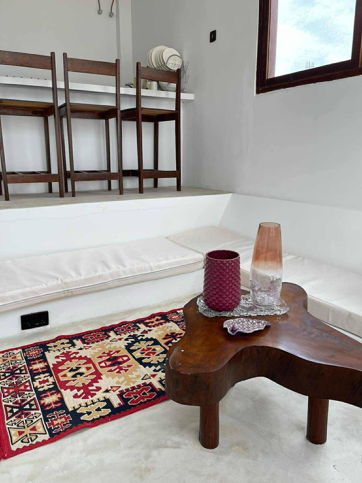 Relax in this serene and spacious ground-floor apartment, fully independent with a private outdoor kitchen (stove, fridge, kettle, blender) and living area. The comfy bedroom includes a desk, wardrobe, A/C, and WiFi. The bright, unique bathroom adds charm, and there’s a hammock just for you. Enjoy village life with modern comforts — washing machine included — and the stunning Jambiani beach just a 2-minute walk away.
