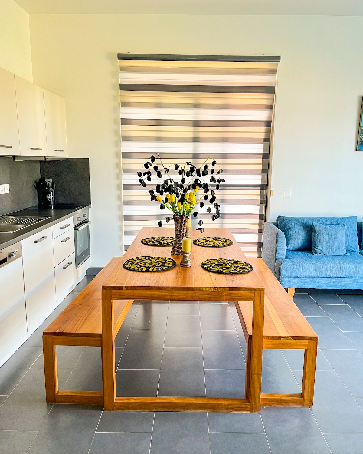 Welcome to Paje Beach! This flat with private garden is your spot for a quiet and relaxing stay, just a few steps from the beach, restaurants & shops. This beautiful flat at ‘The Soul’ compound accommodates 2 adults, plus a child up to 3Y old in a travel crib (available on request). The apartment is fully equipped with AC, freezer, and smart TV and tastefully decorated. A lagoon pool with shallow section for kids is just in front of the flat.