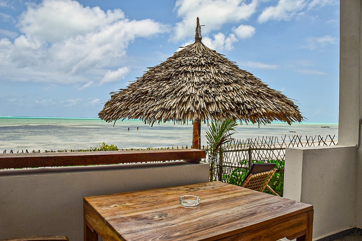 Our new Studio#4 has everything you need for your perfect island holiday in Zanzibar!Steps to the white sand beach with turquoise waters. Relax in style on the private terrace with perfect ocean view.The studio is situated at the 1st floor of a beach house, with a shaded terrace, ocean view, outdoor dining area,traditional Swahili chairs&sun lounger. Private access to your stylish unit. Queen bed with nice linens and the bathroom always hot water! Cute kitchenette with fridge&stove. Truly a gem!