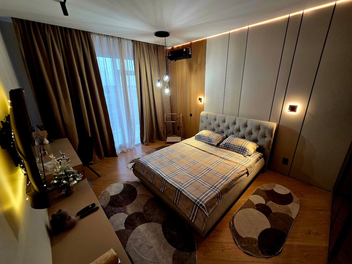 Our apartment is opposite to Dendra park, amazing views, ideal for families, very peaceful. It has 2 bedrooms with three beds, one hall, a kitchen, and two toilets. Building is is Tumar complex. New and modern.