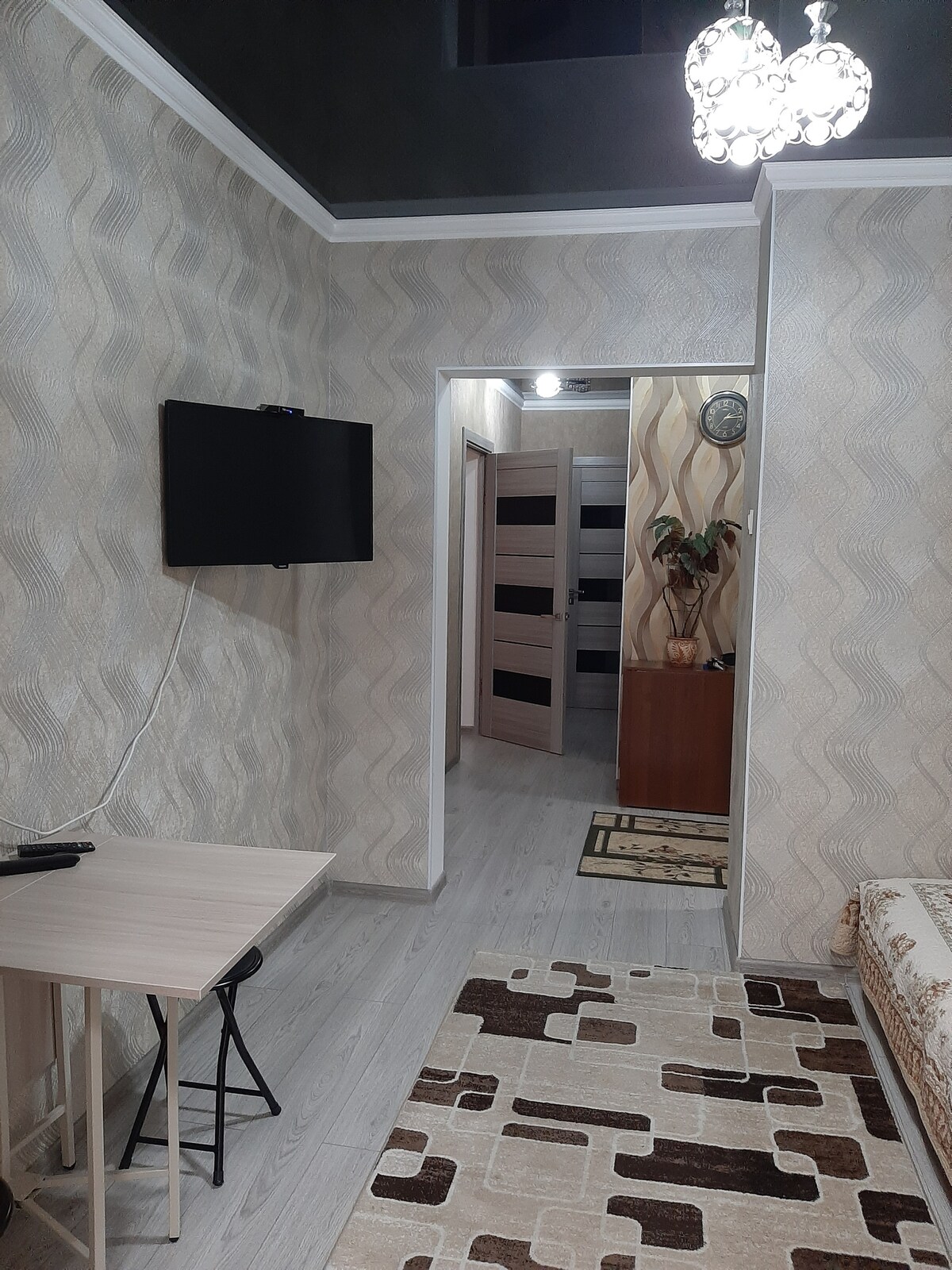 Квартира состоит из двух комнат. Евроремонт. Центр. Все удобства. Рядом теннисный корт, Парк Абая, аквапарк"Фонтан". Wi-fi бесплатный. Предоставляем полный пакет документов.