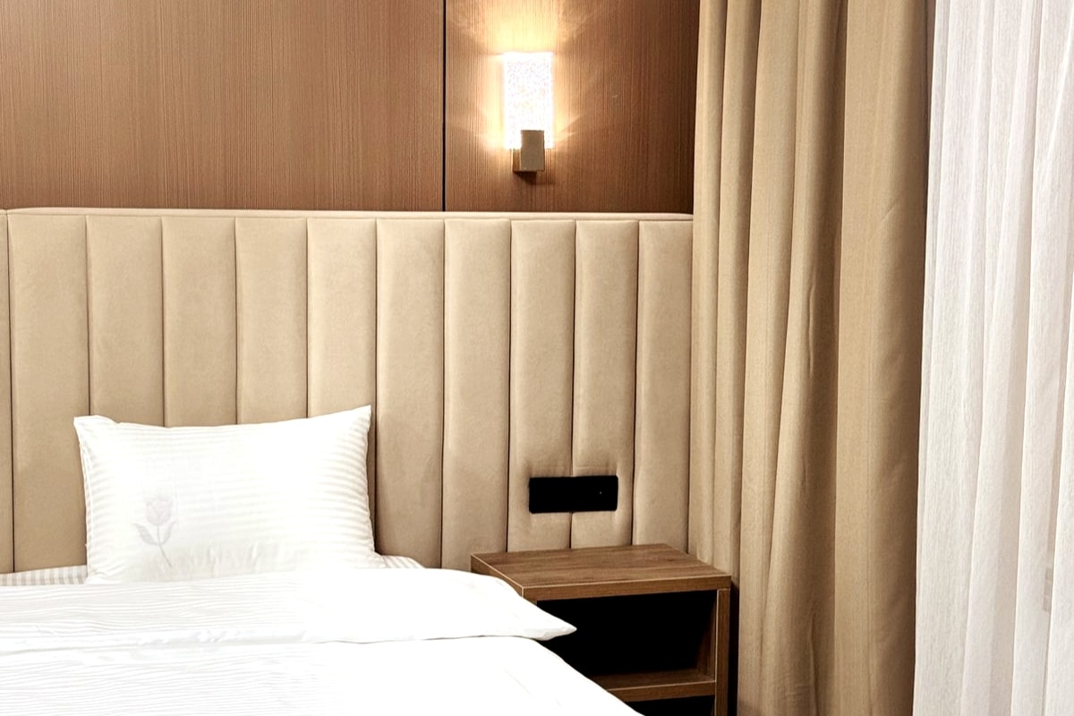 Ikса Hotel — уютный европейский мини-отель в центре Шымкента. В отеле 27 комфортабельных номеров: 19 стандартных, 3 с раздельными кроватями, 2 семейных и 3 полулюкса. Все номера оснащены кондиционером, телевизором, Wi-Fi, мини-холодильником и собственной ванной комнатой. Проживание действует 24 часа с момента заезда, что удобно для поездок в любое время суток. Рядом кафе, магазины и транспорт. 3D-тур доступен по ссылке на нашем профиле I @iksa_hotеl или по запросу у администратора
