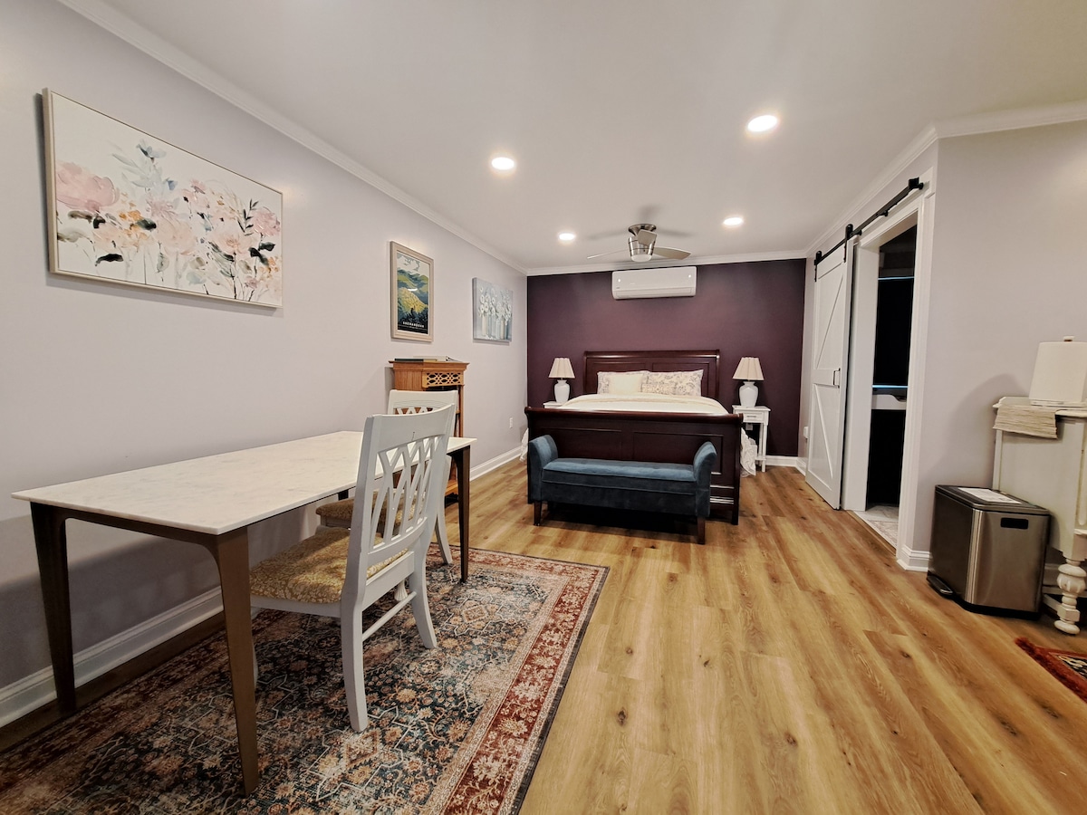 Enjoy the privacy of a spacious, renovated studio with a super-convenient location. Dozens of independent restaurants, coffee shops, breweries, live music, parks, Forbes Center, Bridgeforth Stadium, Hotel Madison, and boutique shopping are within walking distance. It's also the perfect home base for enjoying endless outdoor recreation opportunities, Shenandoah National Park, road/mtn biking, hiking, motorcycle rides, skiing, vineyards, agrotourism, history, and the beautiful Shenandoah Valley.