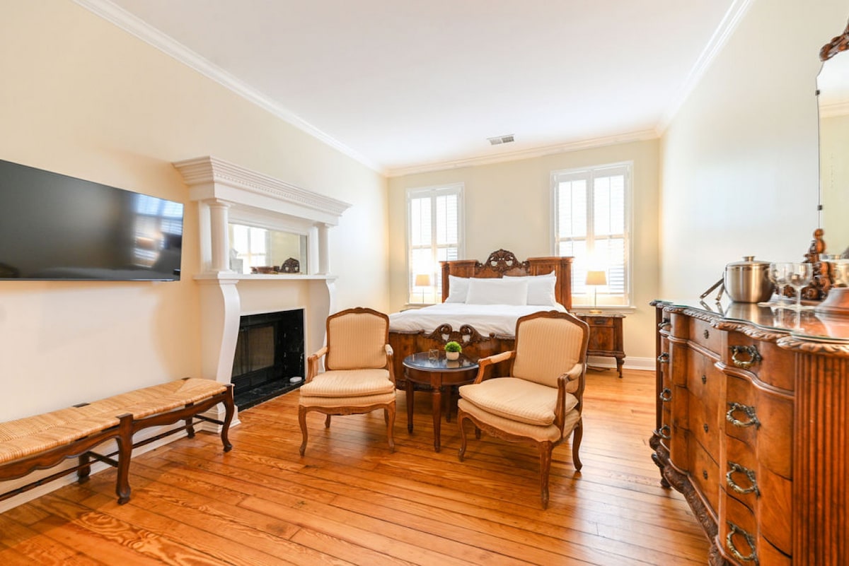 An elegant, private suite inside a 1878 Italianate mansion located in historic Daniels Hill. Authentically restored to its original grandeur and is one of Lynchburg's finest and largest historical homes. - Private sitting parlor, bathroom & bedroom w/ a king bed - Walking distance to downtown Lynchburg & the Blackwater Creek trail - 10 min drive to LU or U of L - Beautiful outdoor patio space w/ a fountain - Kitchenette w/ coffee provided - 2 Large TV's & WiFi - 750 sq ft that is all yours