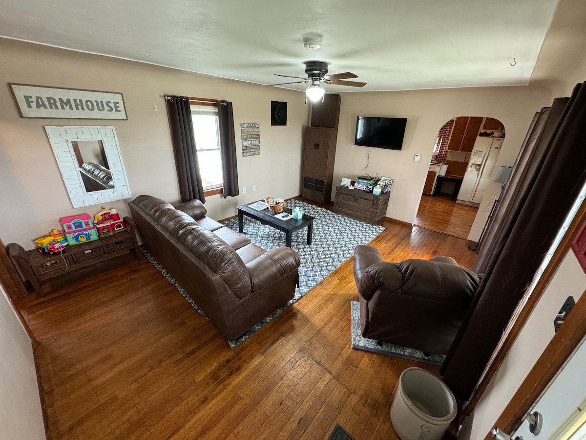 1 Hour N. of Kansas City E. of St. Joseph 27 mi to Hamilton Charming retro farm home One mile on gravel off Hwy 6 I do my best to keep house clean, but sometimes there is dust, seasonal bugs beyond my control, as this is a farm. Come enjoy the simple life in this simple retro farm home. MAXIMUM OF 4 guest-including kids, this is a small home. AC Units put in around May If you’re looking to see stars & enjoy sounds of nature you’ll like this home with the view of sky.