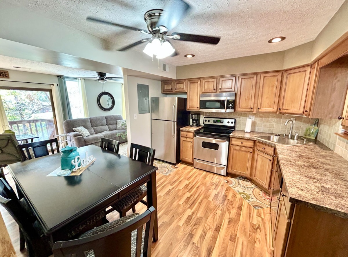 Enjoy the famous sunsets over Lake Cumberland from our spacious 48 foot deck and lower patio. This home is perfect for any family on vacation to this gorgeous area. With the nearest boat dock (Lees Ford Marina) being a mile away. Interested in biking or hiking? Pulaski County Park (4mi) is a great spot for both! After a fun day out and about come back to our newly updated kitchen, or enjoy a summer nights cruise to one of our local restaurants. We can't wait to book with you!