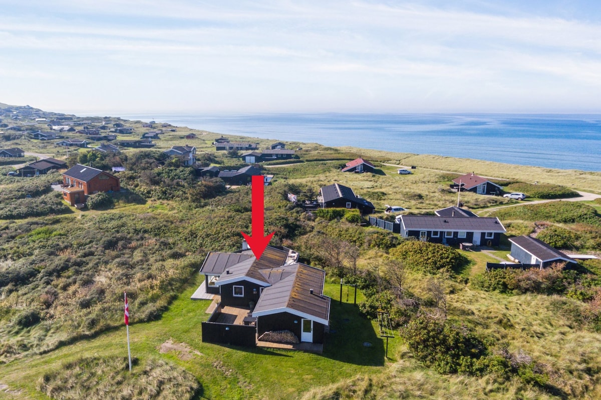Sommerhuset, som er beliggende i 1. række ved Vesterhavet nord for Lønstrup, er yderst velindrettet med udsigt til havet på 3 af husets sider. Der er ca. 40 kvm. terrasse rundt om huset, hvor der er rig mulighed for at finde læ. Der er ca. 900 meter til Lønstrup By på sti langs vandet og fantastiske badestrande inden for ganske få minutters gang. Lønstrup går under navnet lille-skagen pga. sine mange gallerier og stemning. Der er gode indkøbsmuligheder og cafémiljø.