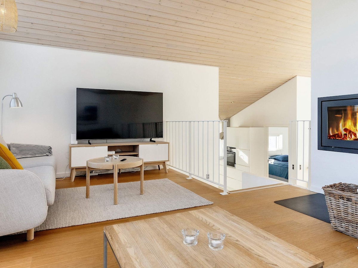 Unique and well-equipped 90 m2 year-round residence + electric charger for electric car. Incl. electricity consumption for water, underfloor heating in the bathroom + wood-burning stove and cleaning. Furnishing: Living room, kitchen, 3 bedrooms, 6 beds (3 double beds), sloping ceiling, 55' Smart-TV, 3 open terraces on hilly natural grounds with sea view and 350 meters to a beautifull bathing-friendly beach with fine corned white sand. The area offers MTB routes, paths and varied wildlife.