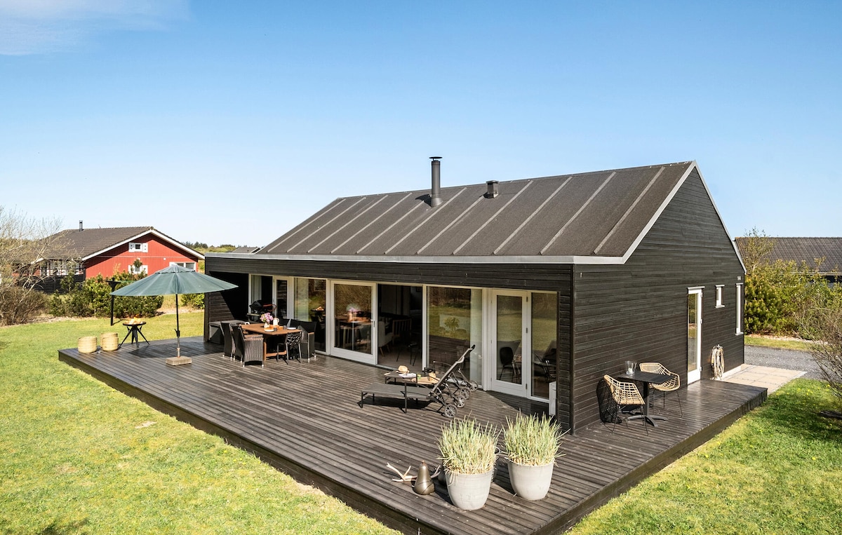 Relax with the whole family at this peaceful place to stay. 300 meter walk to the fantastic sandy beach, through the characteristic dunes of the west coast. Completely private wooden terrace surrounding the house, which allows you to always find a great spot to enjoy the sun - or jump in the wilderness bath to relax! Set out to experience all of northern Jutland's many interesting places reachable within a short drive! Ps: bed sheets/linen can be rented at extra fee of 25 euro/person