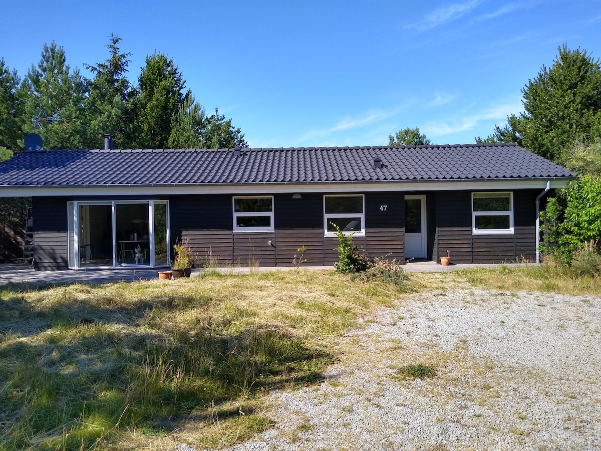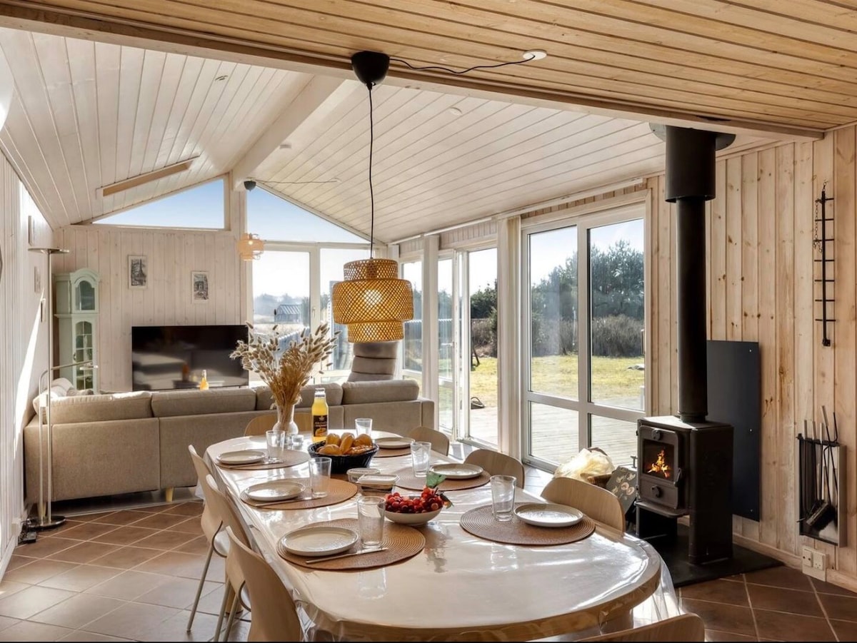 Relax with the whole family at this peaceful place to stay. 300 meter walk to the fantastic sandy beach, through the characteristic dunes of the west coast. Completely private wooden terrace surrounding the house, which allows you to always find a great spot to enjoy the sun - or jump in the wilderness bath to relax! Set out to experience all of northern Jutland's many interesting places reachable within a short drive! Ps: bed sheets/linen can be rented at extra fee of 25 euro/person