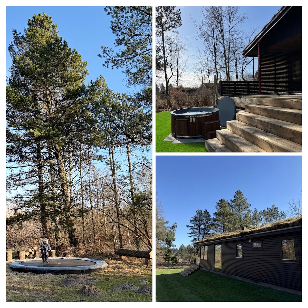 Unique and well-equipped 90 m2 year-round residence + electric charger for electric car. Incl. electricity consumption for water, underfloor heating in the bathroom + wood-burning stove and cleaning. Furnishing: Living room, kitchen, 3 bedrooms, 6 beds (3 double beds), sloping ceiling, 55' Smart-TV, 3 open terraces on hilly natural grounds with sea view and 350 meters to a beautifull bathing-friendly beach with fine corned white sand. The area offers MTB routes, paths and varied wildlife.