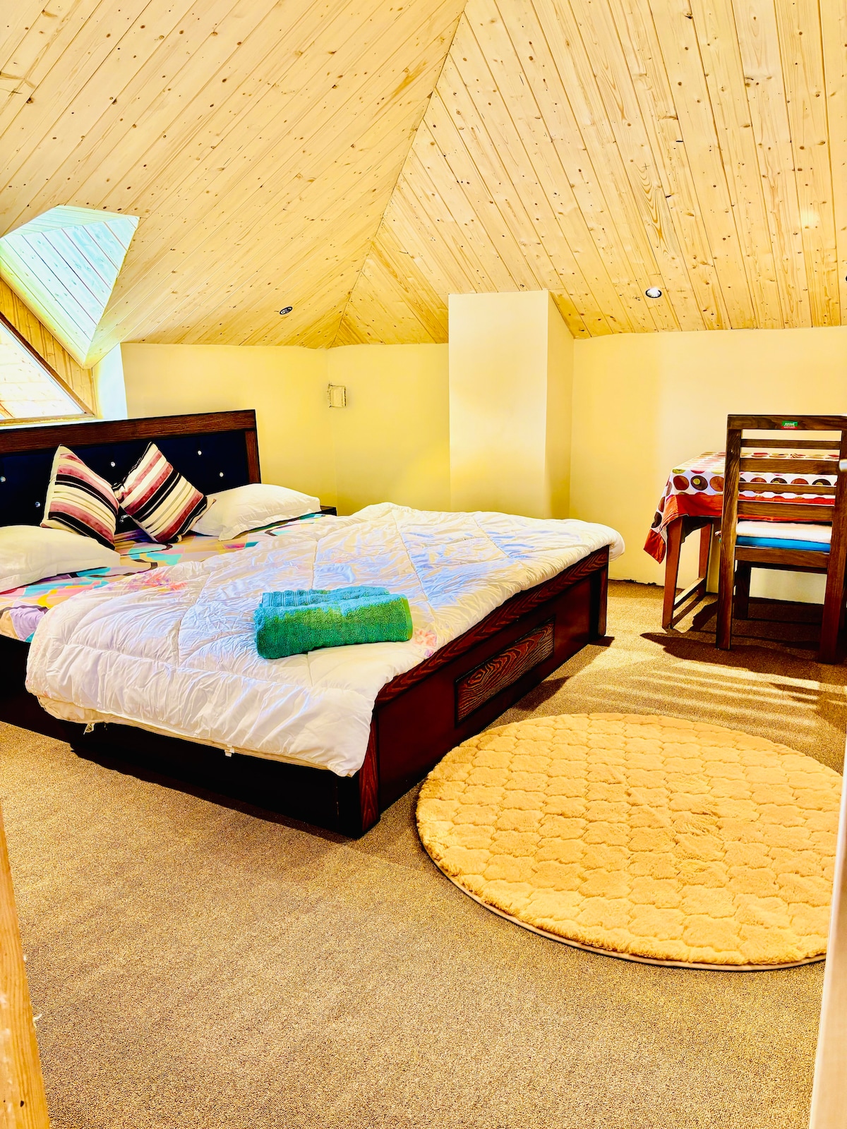 This Tiny house inspired studio, housed within a Victorian chalet, with its independent entryway and a private tiny lawn is sure to enthrall you. Be it the trending WFH requirements or freelancers on the move this place has been designed to cater for all. Furnished in cedar wood and whites, the studio reflecting eloquent modernity also preserves the typical mountain house elements. let yourself experience " House in a Room"