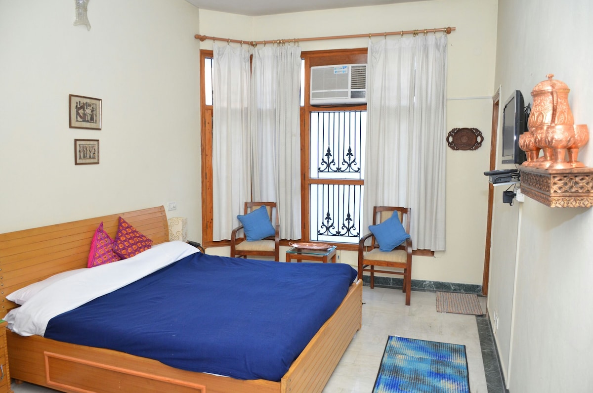 Private air-conditioned bedroom with attached bathroom in a 4BHK ground floor apartment. Apartment building is centrally located in a quiet, safe and upscale neighbourhood of Gandhi Nagar - just 1km away from the Jammu Tawi train station and 4 km from the Jammu airport. We also provide a complimentary home made breakfast. Pls note - Unmarried couples are not allowed.