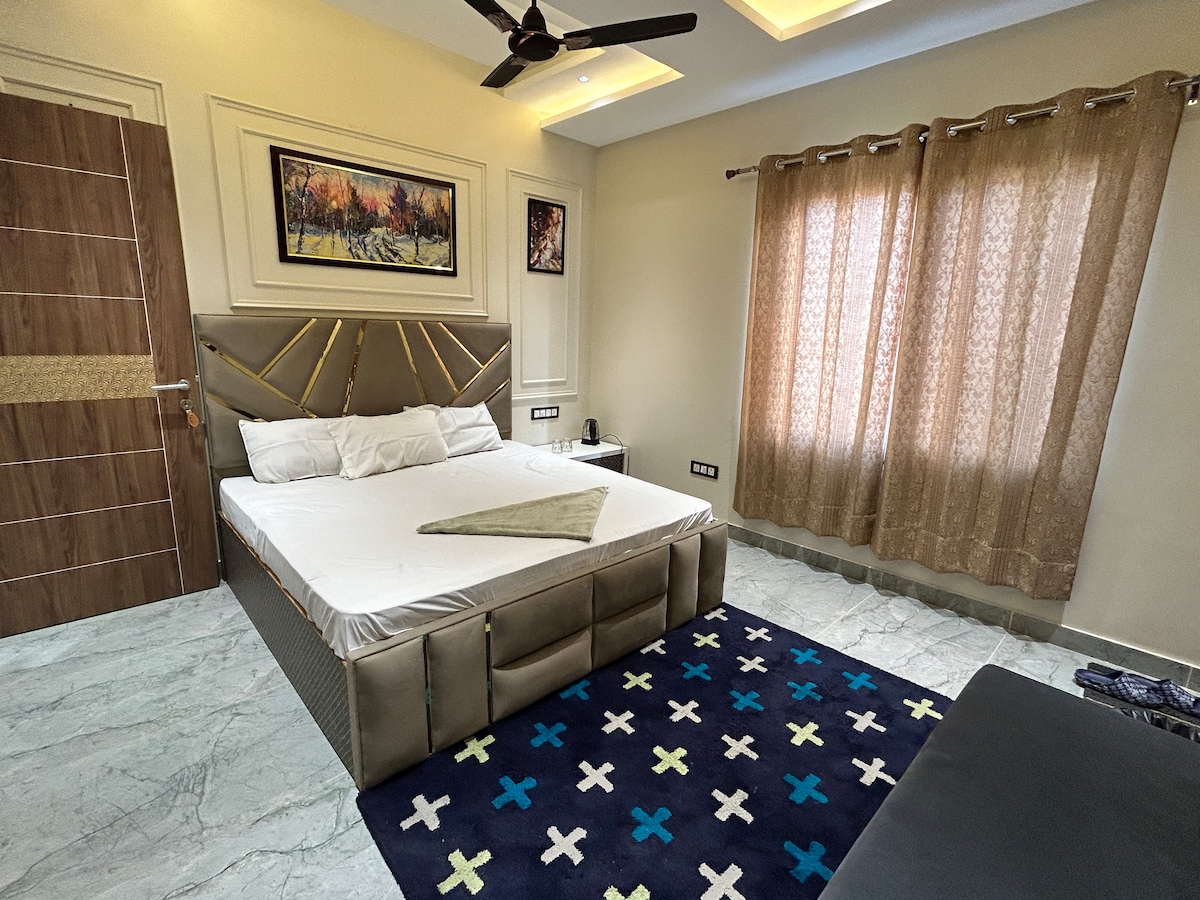 Large Sized Bedrooms With Attached Washrooms & Store Rooms. There Is A Large Living Rooms/Lounge/ Dining Table. It Has Front Facing Independent Large Balconies To Relax. The House Is Well Equipped With Kitchen Having Refrigerator, Gas Stove, Geyser & R.O Water Purifier Along With All Kitchen Essentials. The House Has Independent Approach & Independent Parking For 4 To 6 Vehicles. Laundry Service Will Be Provided. Caretakers Are Available For Any Help . Host Will Be Available For 24/7