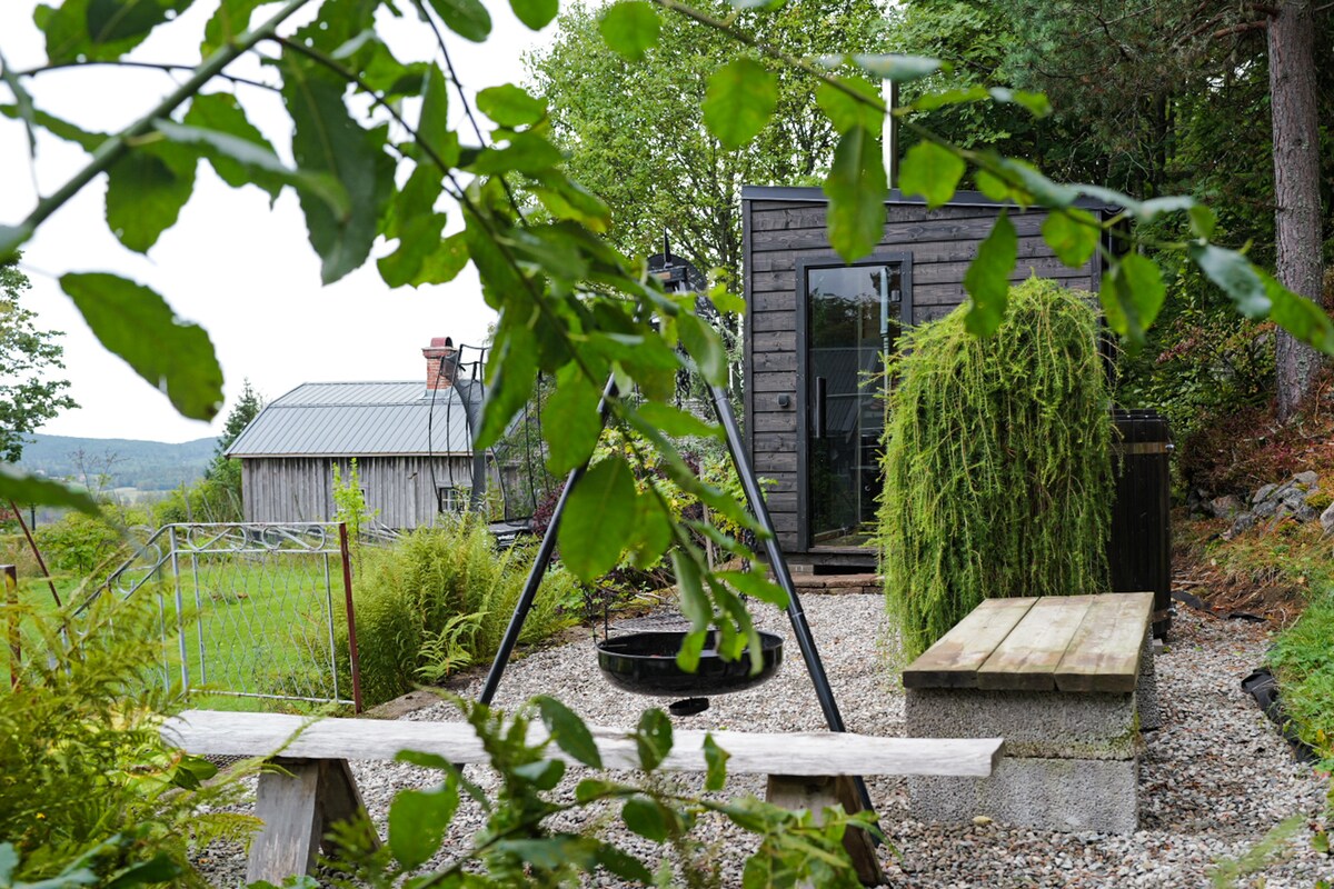 Här finns en äldre stuga med mycket charm att vila upp sig i. Frukost ingår! Köket i stugan är enkelt med vedspis, elektrisk miniugn samt micro. Möjlighet att använda fullt utrustat kök i boningshuset där även toalett, dusch och tvättmaskin finns tillgängligt. Den vedeldade bastun värmer gott och där finns även ett sittbadkar och batteridriven dusch. På verandan hörs vattnet från bäcken och en stentrappa leder dig ned till en ljuvlig plats för kaffepaus. Låna kajaken och paddla upp från dammen.