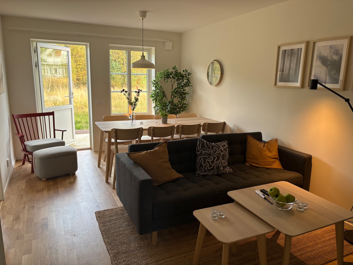 Located within a 30 minutes drive from Östersunds citylife and pristine wilderness of Oviken Mountains you find Bjärme lined up by forests and open fields. The cabin has a modern Scandinavian feel to it and you can literally enjoy the northern lights during the winters right on your doorstep. Next to the cabin, you'll find a private jacuzzi (open may - december) and a wood-fired sauna — the perfect retreat for unwinding and enjoying tranquility.