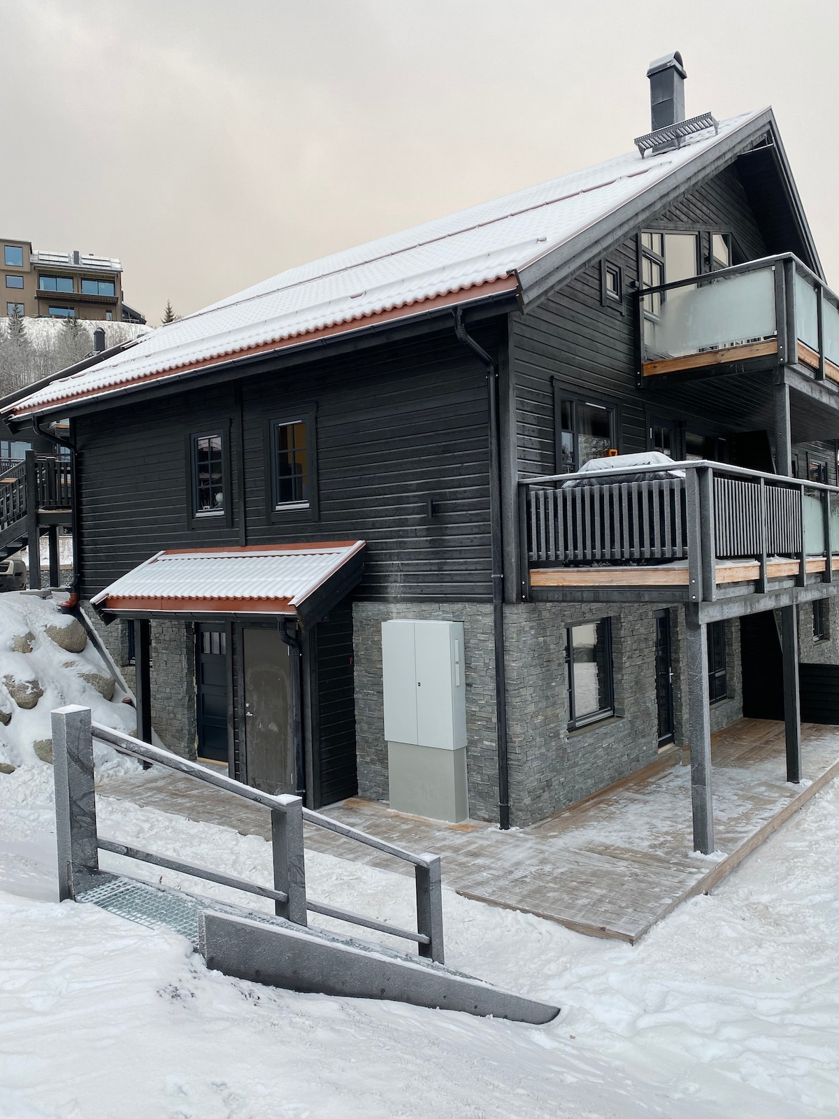 Nybyggt modernt hus precis vid liften i Duved