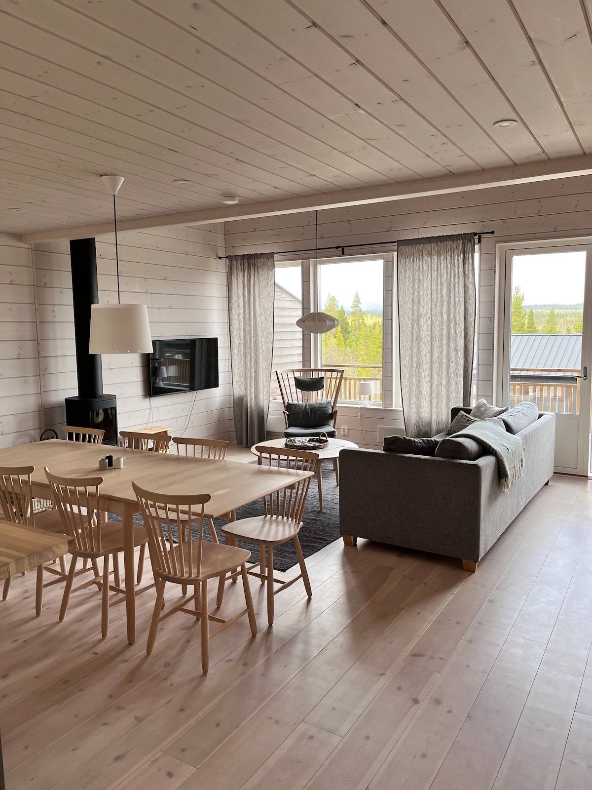 Enjoy a peaceful stay in our cabin designed with nordic design furniture. A cozy fireplace and sauna. Situated in beautiful nature, ski slopes and cross country slopes only 4 min walk. Fishing and bathing also 4 min walk. The house has all amenities needed. Clean and just amazing! Welcome.