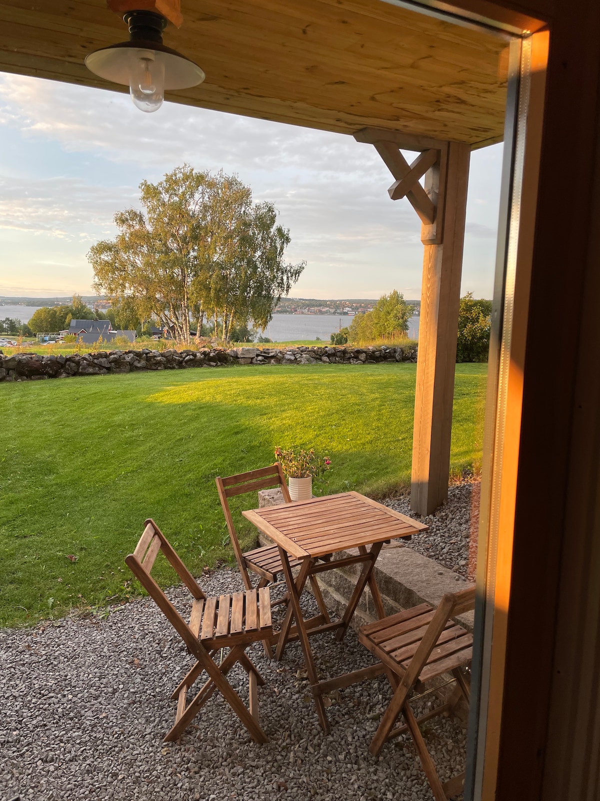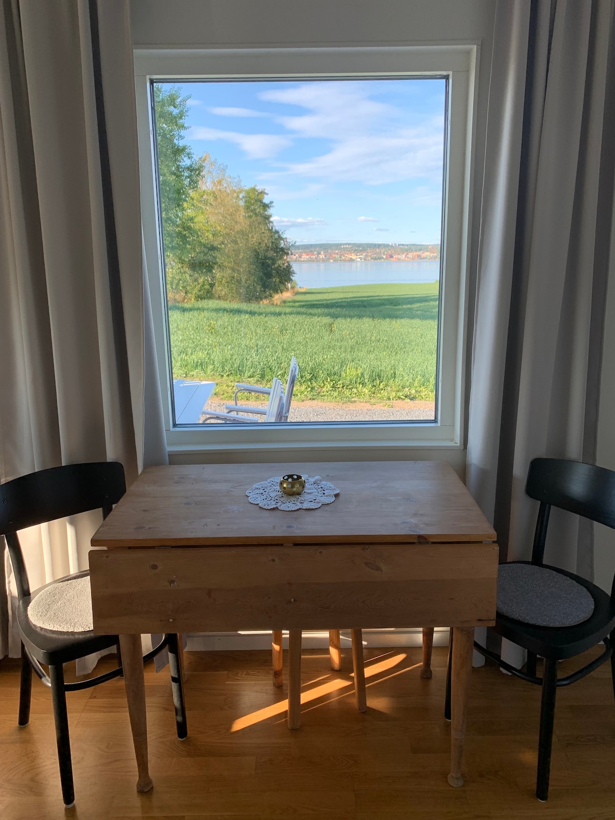 Lägenhet med fantastisk utsikt över sjön och centrala Östersund. Lägenheten är smakfullt inredd i skandinavisk stil med ljusa färger. Här finns stora fönster med sittplatser där man kan vila blicken över Storsjön, se solnedgången eller spana över Östersunds stadsvy. Lägenheten har alla bekvämligheter du behöver. Från lägenheten är det nära till sjön och skogen med fina promenadstigar. Du tar dig centrala Östersund bäst med bil, det ca 10 minuter.