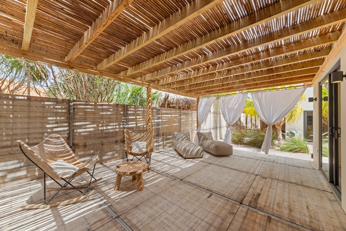 Our modern and luxurious one-bedroom bungalow, located just a 5-minute drive from Jan Thiel Beach, offers everything you need for a relaxing stay. Styled with a charming Ibiza-inspired design, the bungalow features a spacious bedroom, a luxurious en-suite bathroom, and a fully equipped kitchen. Unwind in the beautiful patio garden with your own private plunge pool. The peaceful location, combined with all modern comforts, makes this the perfect place to enjoy the best of Curaçao.