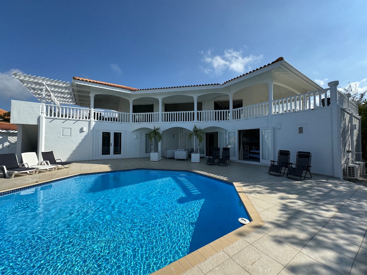 Looking for the ultimate escape in Curacao? With 6 spacious bed- and bathrooms, an open-concept living and dining area, and a private pool, this villa is the perfect retreat for families, groups of friends, or couples. Our location is unbeatable - Being in the safe and secured Jan Thiel area we're just a short walk away from some of the most beautiful beaches, beach clubs, restaurants, shops, gym, grocery store, and exciting nightlife. Come and enjoy the stunning seaview from our pool.