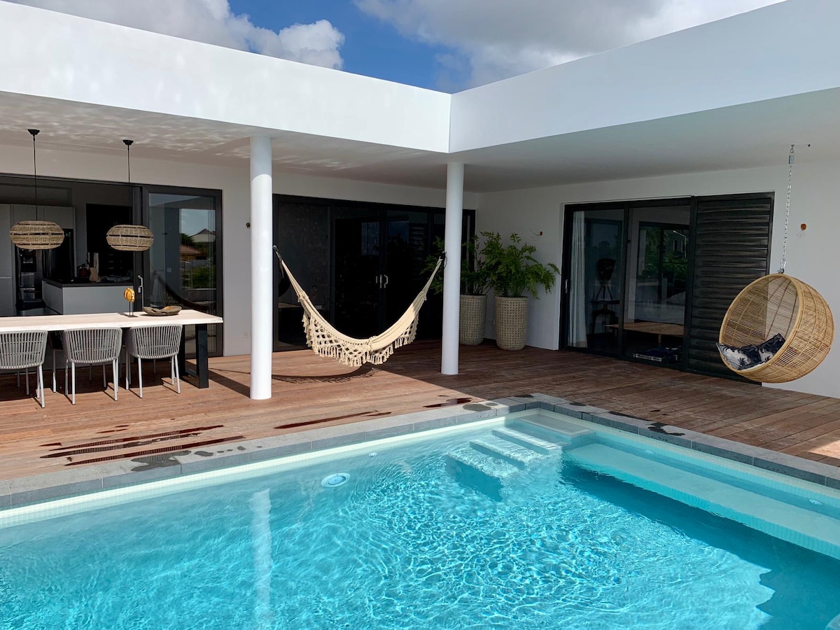 This new modern villa within walking distance of Mambo Beach offers ultimate comfort and relaxation. Two fully retractable glass doors ensure that natural light and a gentle breeze always flow inside. All bedrooms are air-conditioned, soundproofed, and furnished with luxurious box-spring beds. The bathrooms have spacious walk-in showers and illuminated mirrors. The garden has a private pool where you can cool down and relax on the garden terras or enjoy a drink on the verandas.