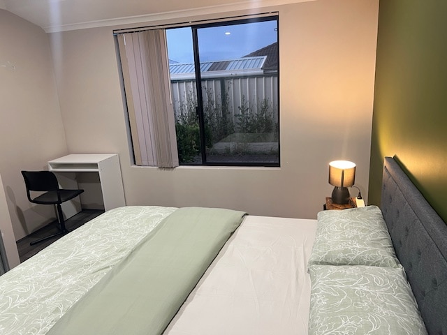 Welcoming you to a stylish, sewing studio for short stays. Enjoy a coffee in queen bed, after a comfortable sleep. Then bathe in the modern ensuite. Prepare a basic meal before departing for the day's events. Return to chill out, away from the hustle & bustle. Close to Sth. Fremantle/South Beach precinct (8 mins drive). Fiona Stanley Hospital, Murdoch Uni & Adventure World are just 5 mins away. Attached to the owner's home. Suited to those with a car. Please note- NO AIRCONDITIONING.