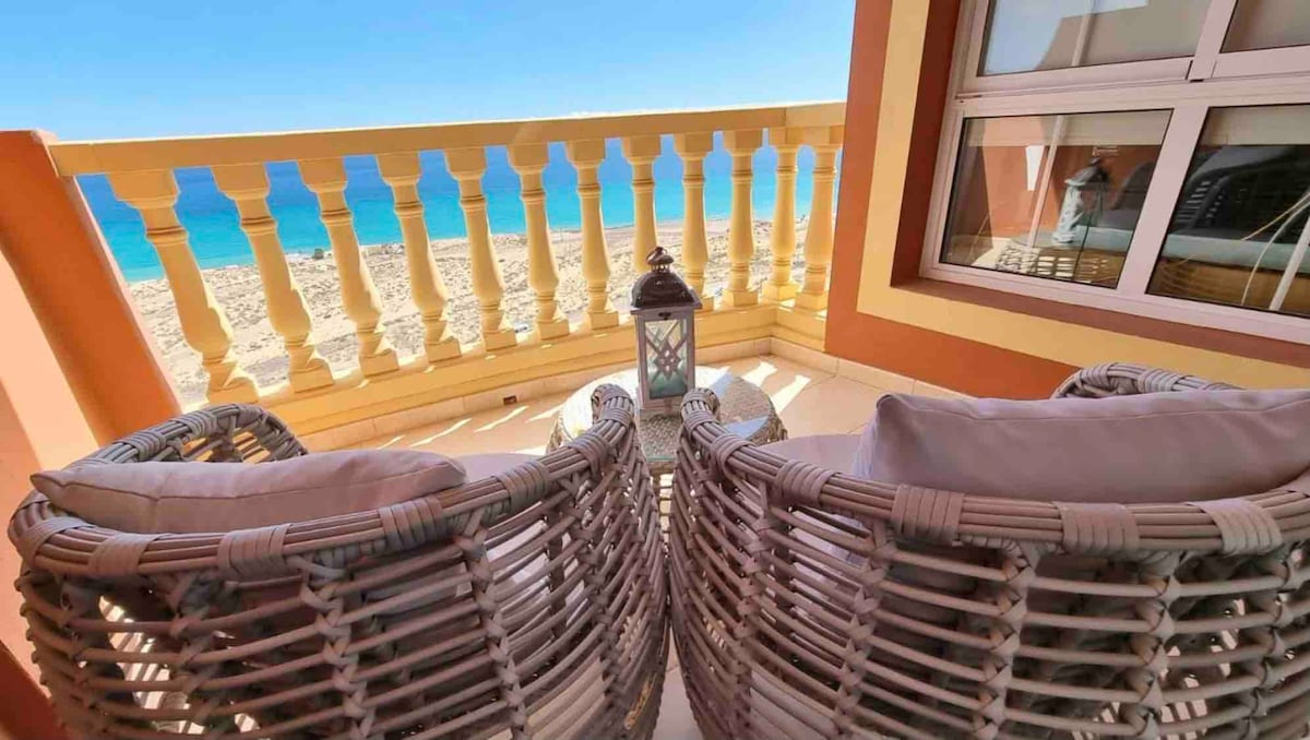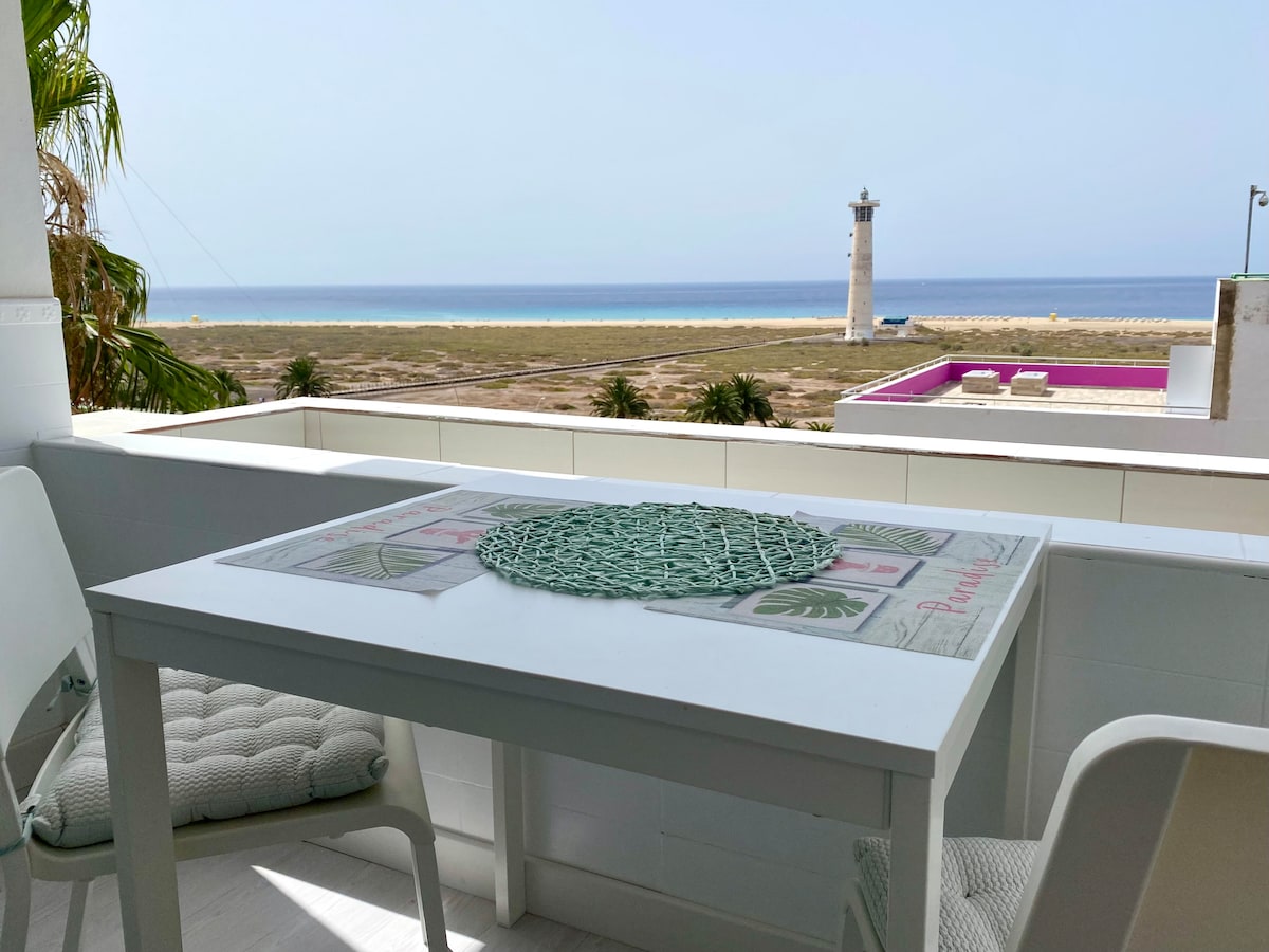 The apartment has an impregnable sea view and is located in the middle of a protected area near the beach of Sotavento, in the south of Fuerteventura. Nearby you will find a pristine beach with fine golden sand and crystal clear turquoise waters. It is an ideal place to practice various water sports . The apartment is fully equipped. There is an outdoor swimming pool with sun loungers (free of charge) and large terraces for sunbathing. We speak ENG / GE / SP / FR / DU / LU