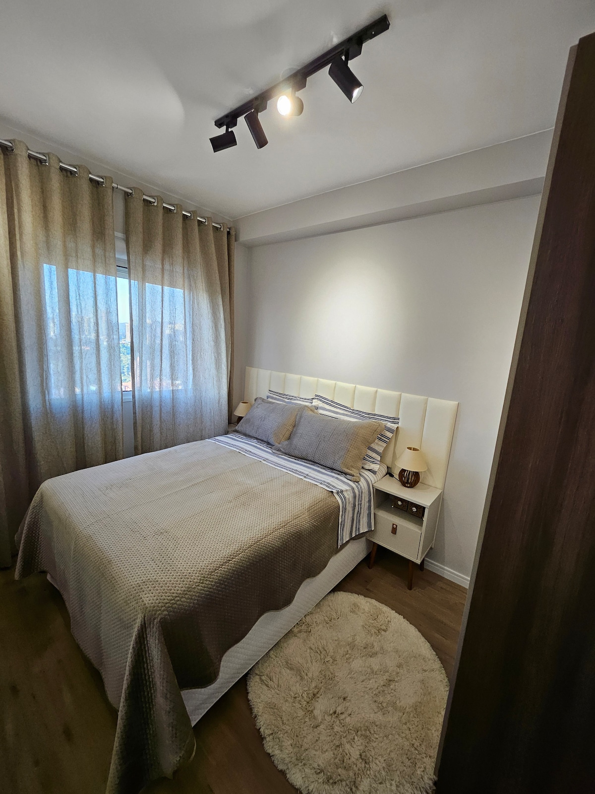 Você pode optar por uma cama de casal tamanho King ou duas camas de solteiros,mais um colchão extra. Fogão por indução e diversos utensilios de cozinha, tudo novo. Ficamos no coração da Granja Viana , perto de muitos restaurantes. No prédio temos lavanderia self-service, garagem ampla ,piscina climatizada, academia e mini Mercado . Estrutura de Hotel.