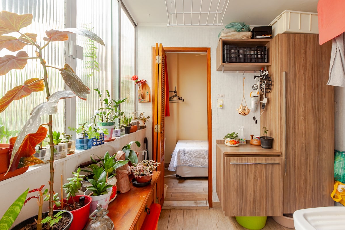 Flat, Stúdio ou Kitnet, você pode chamar do que quiser, nós chamamos de lar. Esse espaço fica numa extensão separada da casa da minha mãe, ela mesma cuidou de tudo com carinho e o maior capricho. A Garagem tem portão automático, e é compartilhada com o carro da minha mãe (tipo de garagem presa / portão sem sensor de barreira), mesmo assim se tem privacidade, o legal é que se precisar de uma lata de leite condensado quando bater uma fissura por brigadeiro de panela, vai achar a quem recorrer :)