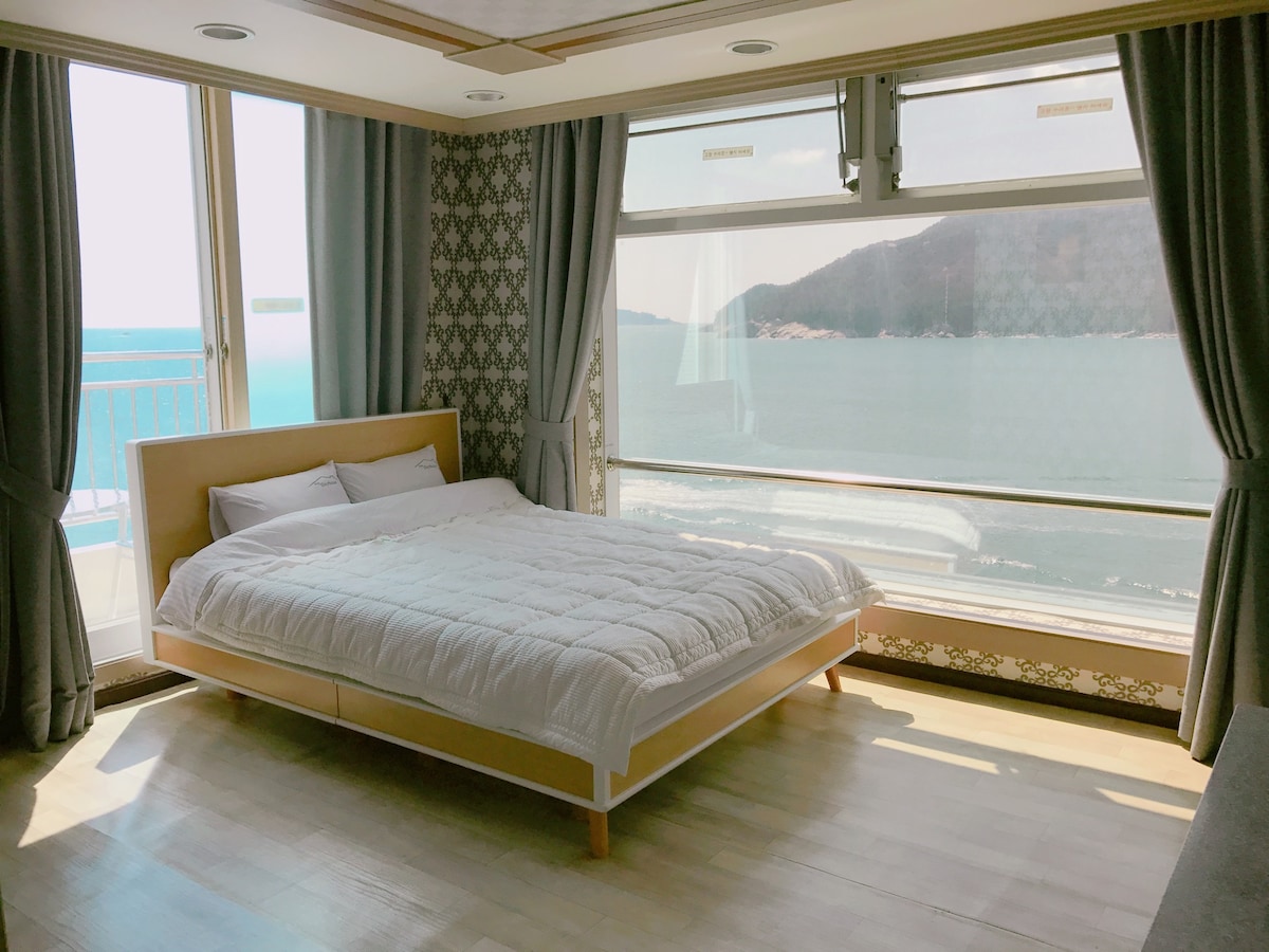 바닷가 도보3분 10평 호텔형 100%오션뷰 최신 공기청정 시스템 해변 언덕 1열
