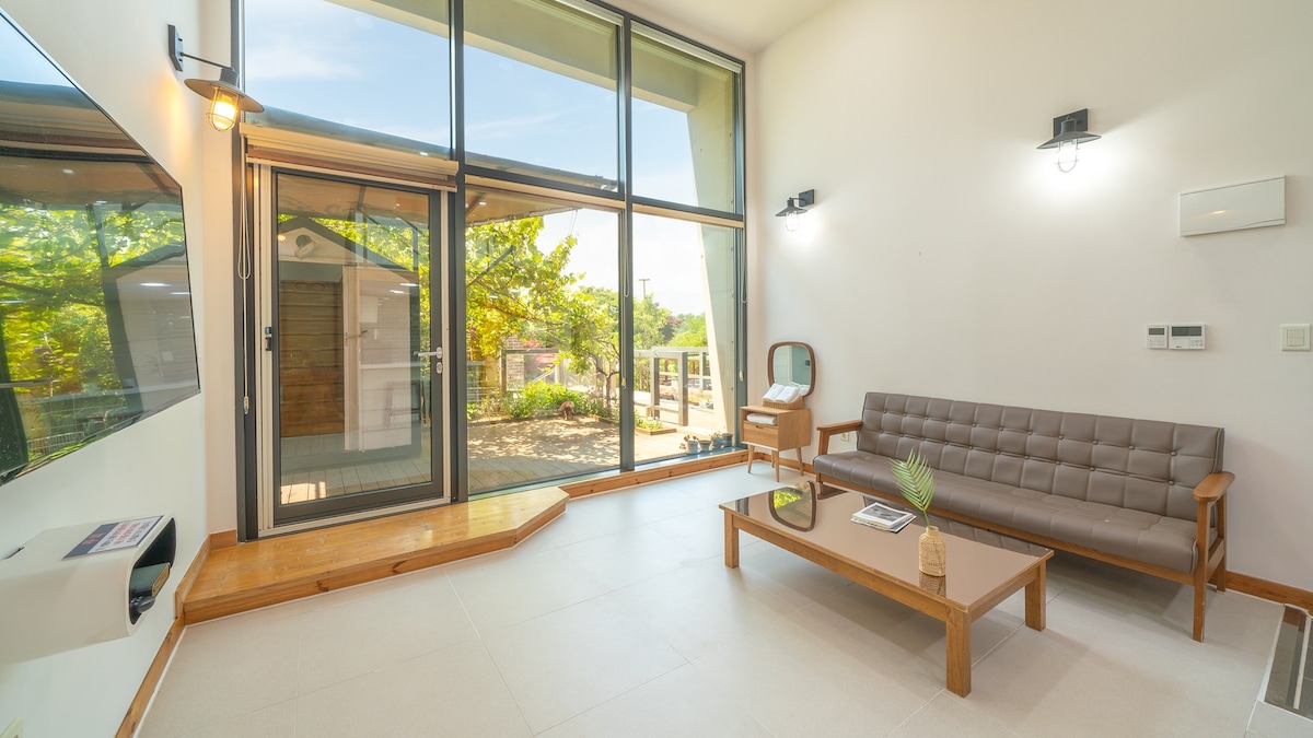 宽敞的院子独栋房屋、烧烤、救世主之家방영、市场和美食步行15分钟-「情」