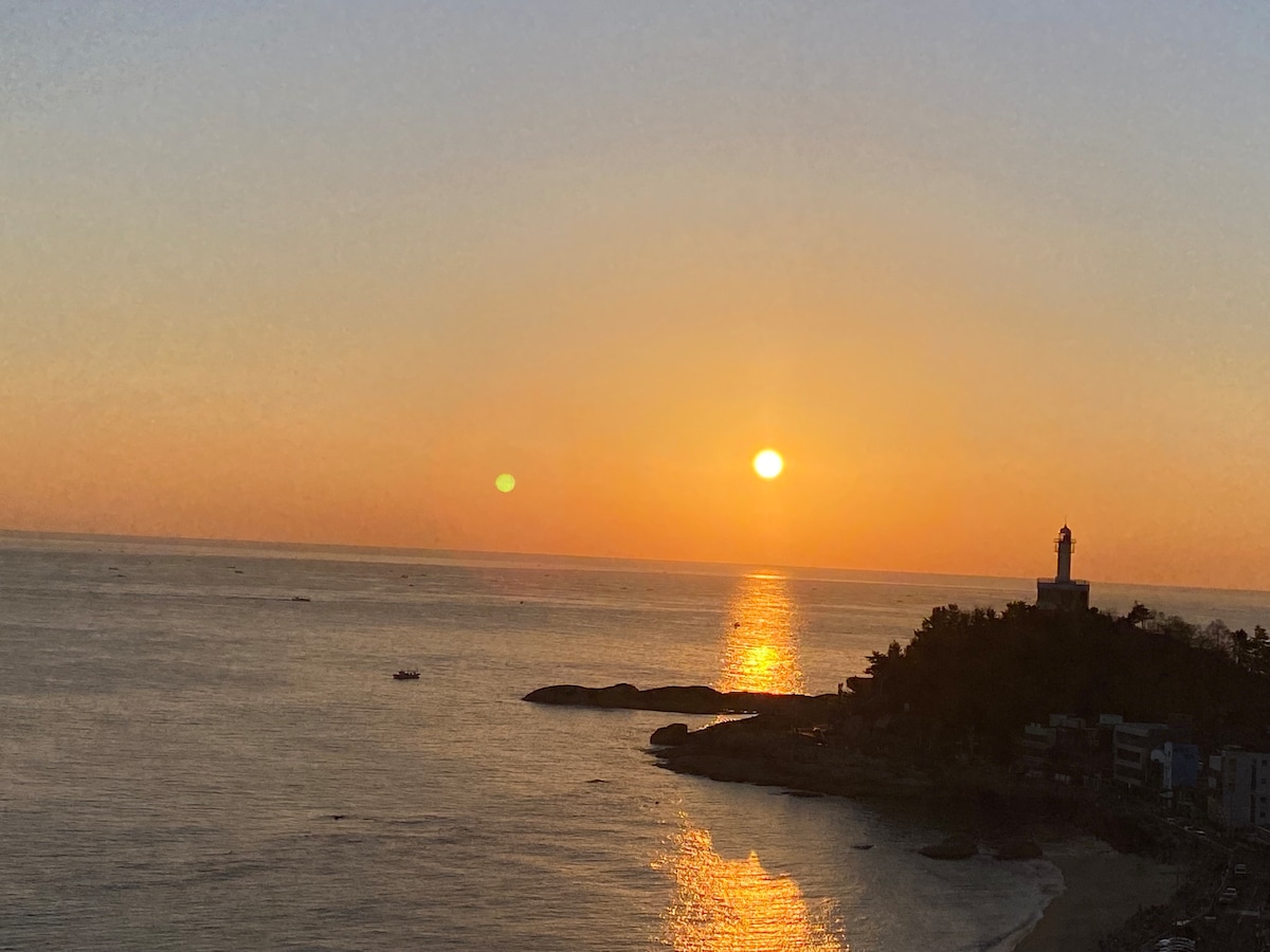 1. Wide Ocean View from the 14th floor balcony - The Sunrise(morning), light house beam(night) 2. Clean & Modern room - Just built in 2022, fully equipped home appliance. Lundry & Drying machine etc. 3. Good location for Travel & Rest - Just near to Bus stop to MT Seorak - Walking distance to beach, Museum X, Restaurant & Bar, Cafe, local Ports, Sokcho Central Market etc. 4. Free parking area inside the building