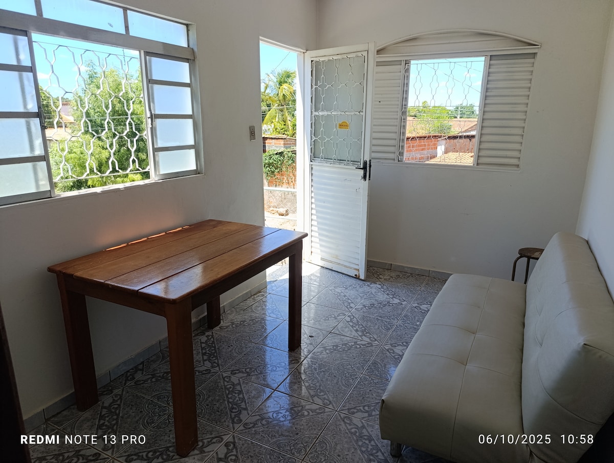 Relaxe com toda a família nesta acomodação tranquila. Local possui tv com plataformas Netflix,Globoplay, HBO, quarto com ar-condicionado, Wi-Fi, local arejado e estruturado. Bairro tranquilo, com mercado próximo, posto de saúde, lanchonete entre outros